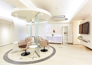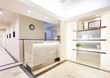 ピュア・ホワイトで統一された、清潔感とモダンな雰囲気のエントランスにて、スタッフがひとりひとりの患者様を温かくお迎えさせていただきます。