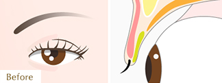 まぶたを切開して眼窩脂肪を取り出す「脱脂」と、まぶたに約1〜2mmの穴を開け、そこから眼窩脂肪を吸い出してまぶたをすっきりとさせる「マイクロ脱脂」からお選びいただけます。まぶたに傷を残したくないという方には、マイクロ脱脂をおすすめいたします。