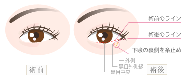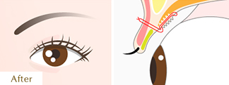 カウンセリングでご希望のラインを伺い、デザインのシミュレーションを行った上で、メスで上まぶたの皮膚を半弧状、あるいは三日月状にカット。切開した部分を丁寧に縫合して、くっきりとした美しい二重に仕上げます。
