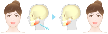 奥歯を噛みしめるときに使う筋肉(咬筋)にボトックスを直接注入することによって、筋肉を縮小させてエラの張りを改善し、フェイスラインをすっきりとさせます。