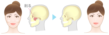 骨張った頬は顔全体をゴツく男っぽく見せ、また頬が作る影によって老けた印象を与えてしまいがちです。頬骨整形術は、必要以上に突き出た頬骨を削ったりカットすることで、卵形のやさしい面立ちを形成する手術です。